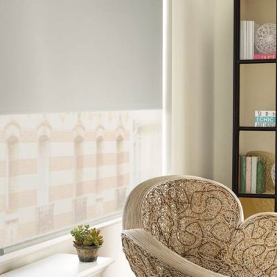 Control at the window is necessary for a comfortable ambiance. Our Designer Solar Shades collection is available with dual shades, which means more privacy and light solutions. Enjoy your view with filtered light when the front roller shade is lowered. For room darkening or more privacy, simply lower the secondary blackout roller shade.